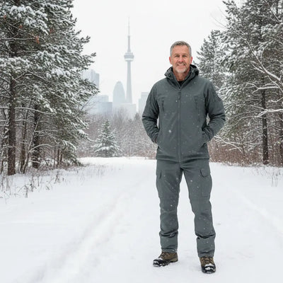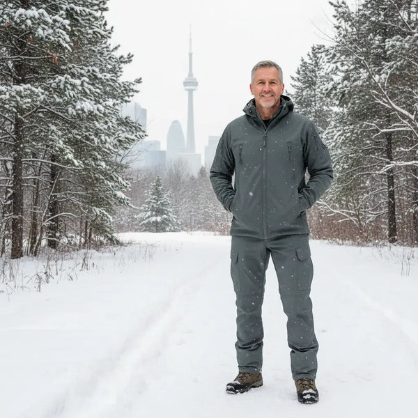 The opposite. The softshell fabric flexes with your body. Customers report climbing ladders, kneeling on rooflines, and hiking steep trails without restriction. This isn’t a stiff hardshell — it moves the way you move.